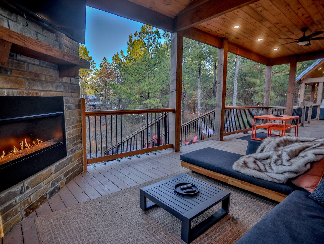 You’ll love this mountain cabin for your trip to Broken Bow! Here's why: - 5 min to downtown Hochatown - Hot Tub w/Towels - Fire Pit & string lights - Private balcony with mtn and sunset views - 1400 sq ft of patio space - Upstairs 1 King w/balcony + Bunk Room - Downstairs 1 King Bed - Arcade - Huge Outdoor couch space - TV in all rooms - Fast WiFi - Outdoor & Indoor Fireplace - Fully Equipped Kitchen - Rope climbing wall - Corn hole+Horse Shoes We'd love to host you! Book with us Today!